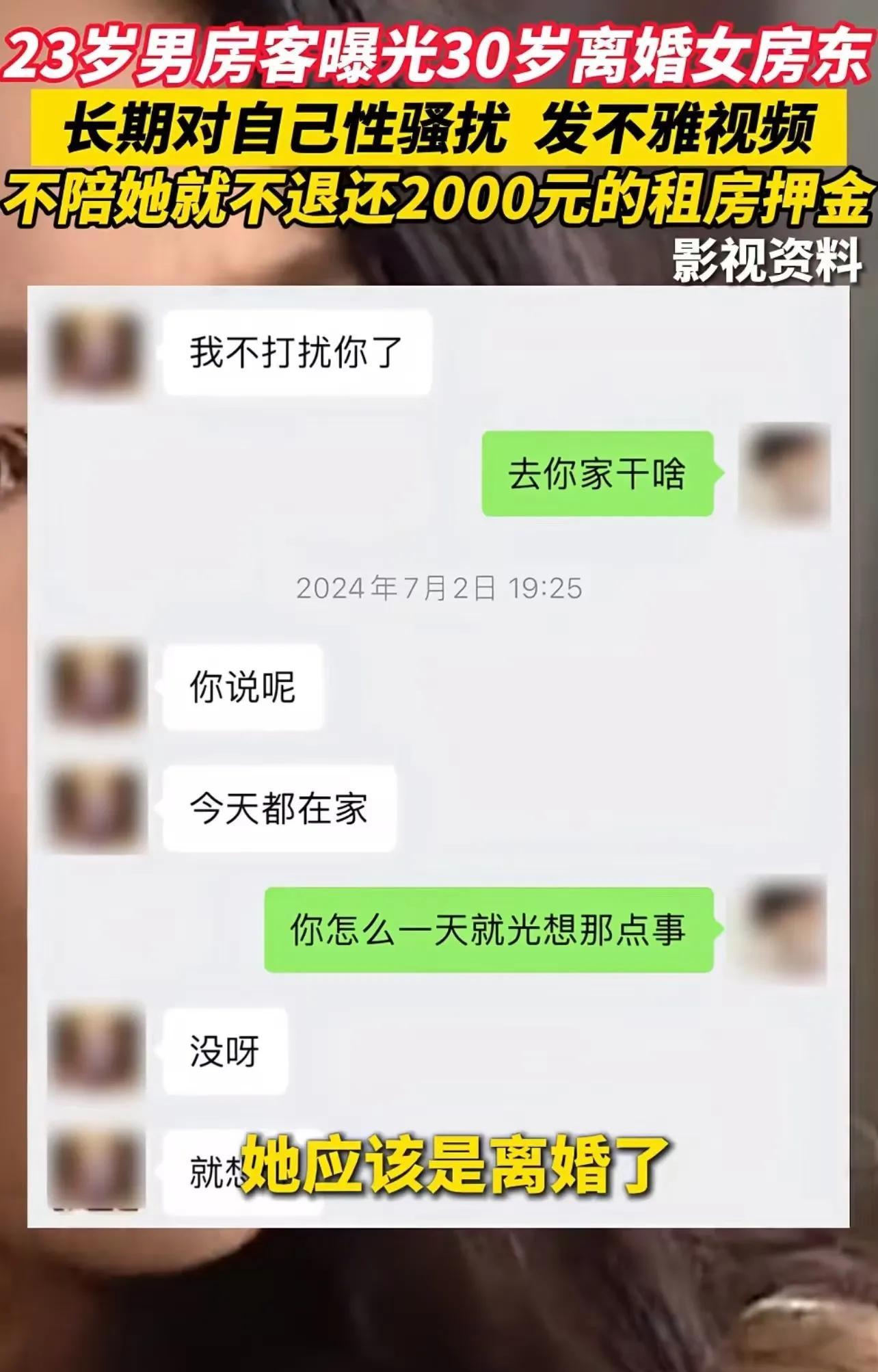 30多岁女房东骚扰,并被威胁:“不陪她睡觉就不退 2000